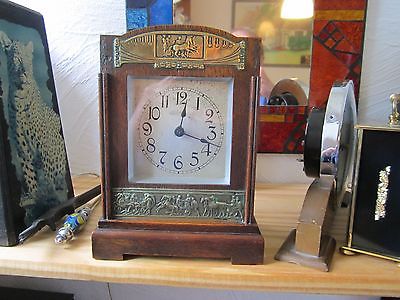 UNUSUAL SMALL ANTIQUE MANTEL CLOCK IN WORKING ORDER