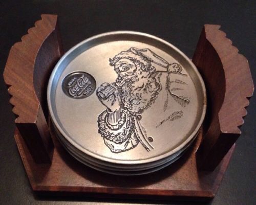 Title (ebay affiliate link): 4 Vintage Collectible Coca-Cola Centennial Pewter Metal Cast Iron Coaster Santa