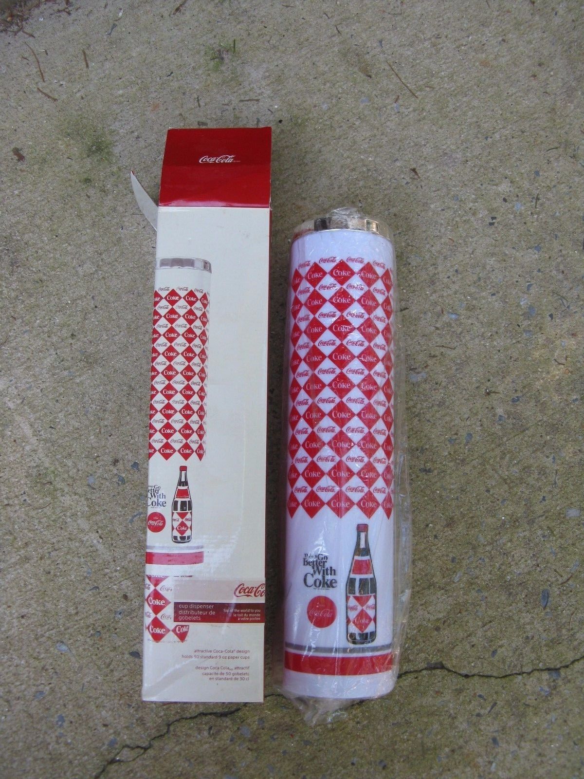 Title (ebay affiliate link): VINTAGE COKE COCA-COLA THINGS GO BETTER WITH COKE CUP DISPENSER MIB