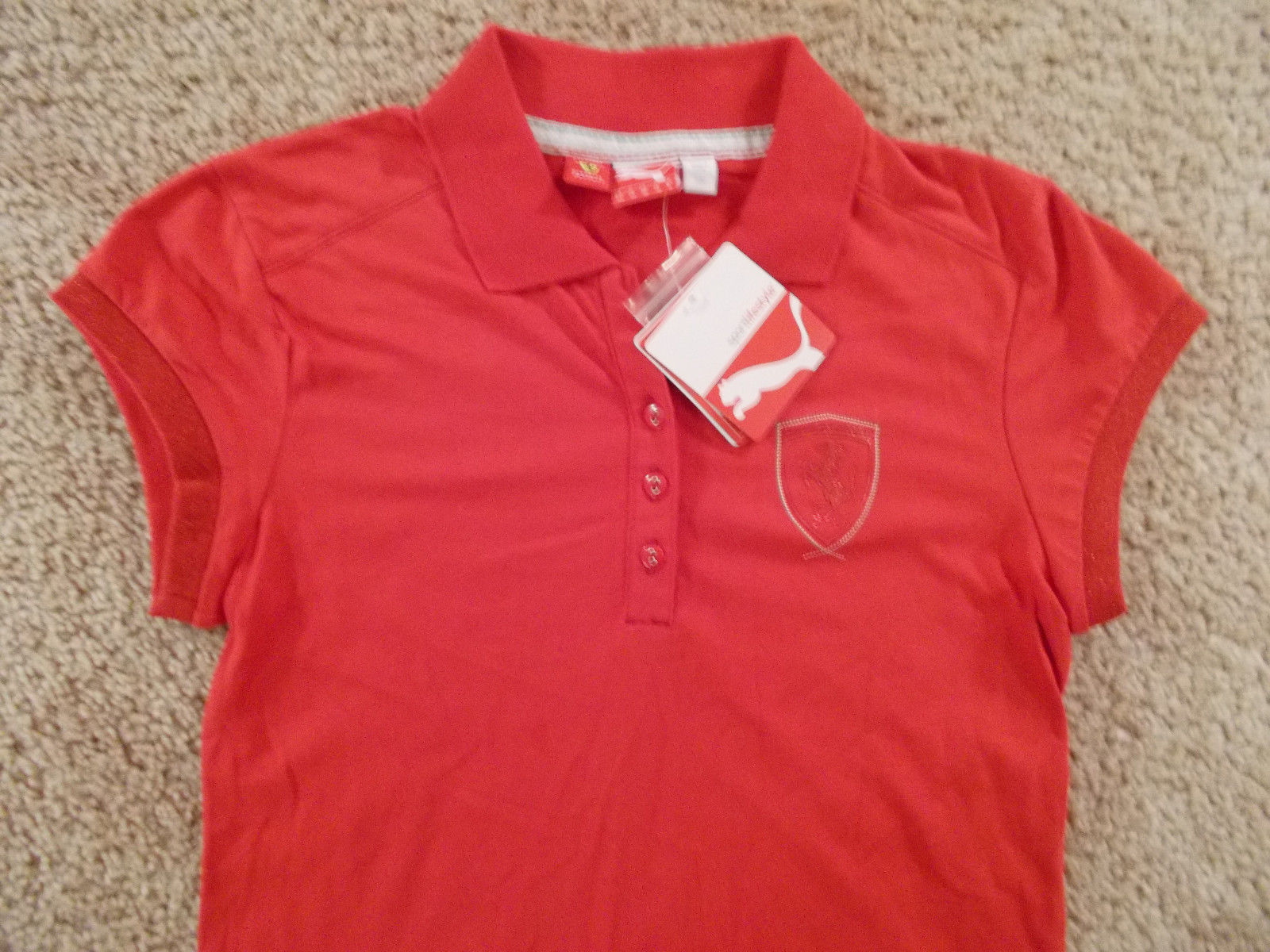 Title (ebay affiliate link): NWT PUMA FERRARI SHORT SLEEVE RED POLO SHIRT WOMENS XS RETAILS 55.00