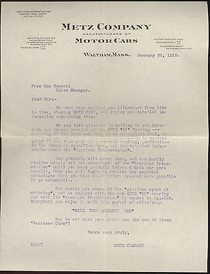 Title (ebay affiliate link): 1916 LETTERHEAD, METZ CO. MANUFACTURERS OF MOTOR CARS, WALTHAM, MA.