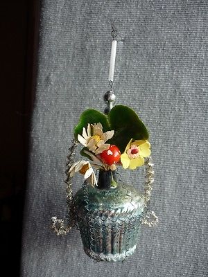 Title (ebay affiliate link): VTG.GLASS BEADED BASKET WITH PAPIER FLOWERS CHRISTMAS TREE ORNAMENT