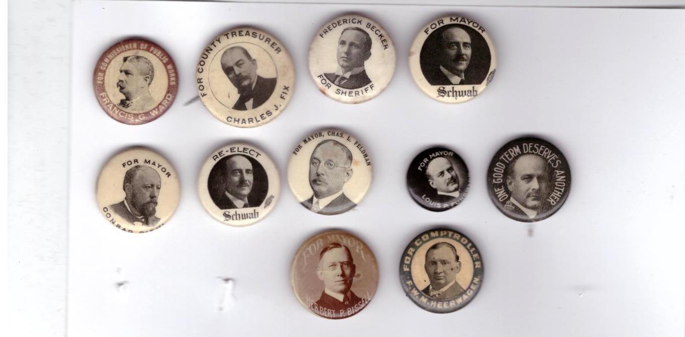 11 CELLULOID PINS MAYOR BUFFALO & ERIE COUNTY NY LOCALS DIEHL, SCHWAB, WARD