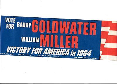 Vote For BARRY GOLDWATER/ William Miller 1964 Bumper Sticker 14 1/2 x 4" intact!