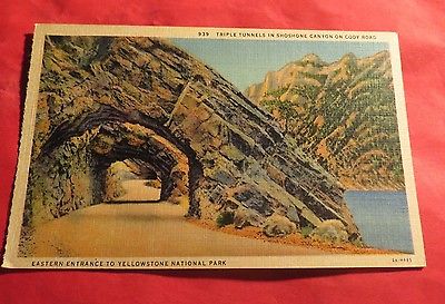 Title (ebay affiliate link): Yellowstone N.P Eastern entrance Triple Tunnels Linen vintage postcard