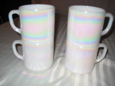 Federal Glass Mug Lot Lustre Milk Glass Stacking Mint