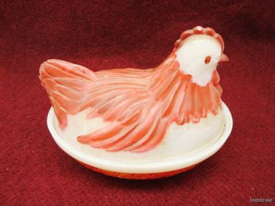 Antique Milkglass CHICKEN HEN ON NEST w/ Hand Blown EGG