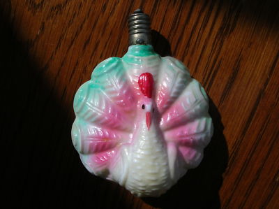 ANTIQUE PEACOCK CHRISTMAS LIGHT BULB MILK GLASS