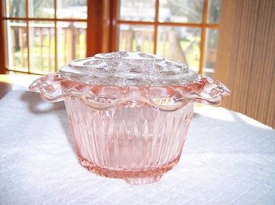 Title (ebay affiliate link): Old Colony Lace Edge Pink Flower Bowl w/Crystal Frog Hocking Glass 1930's