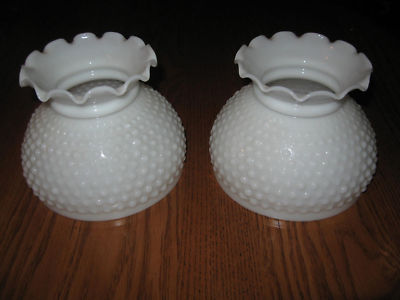 OLD WHITE HOBNAIL MILK GLASS OIL OR KEROSENE LAMP SHADE