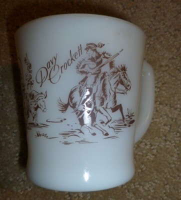 Fire King DAVY CROCKETT Milk glass white mug COWBOY