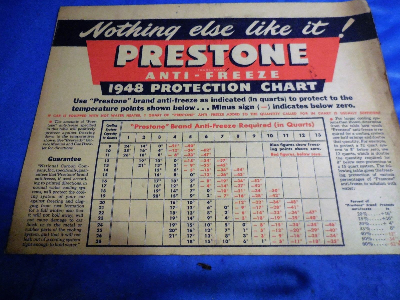Title (ebay affiliate link): 1948 PRESTONE ANTI-FREEZE ORIGINAL PROTECTION CHART! SUPER GRAPHICS!MUST SEE!!