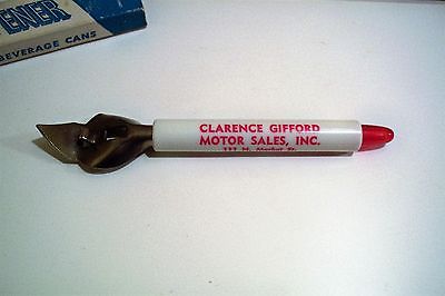 Title (ebay affiliate link): Vintage Can & Bottle Opener Clarence Gifford Motor Sales Johnstown NY