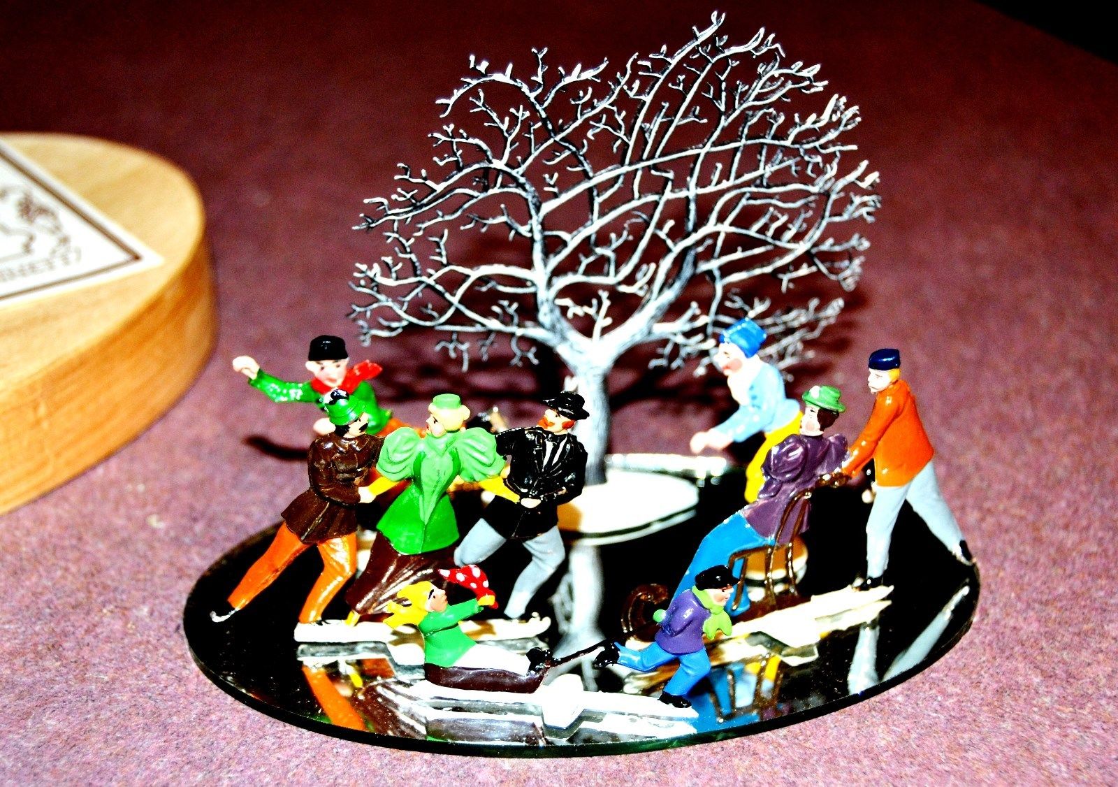 German Hand Painted Pewter Christmas Village Ice Skating Berliner Zinnfiguren