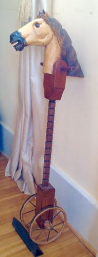 VINTAGE WOODEN STICK HOBBY HORSE ON WHEELS