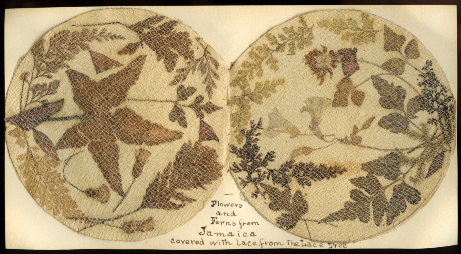 1800S JAMAICA ANTIQUE FLOWERS & FERNS COVERED WITH LACE TREE LACE