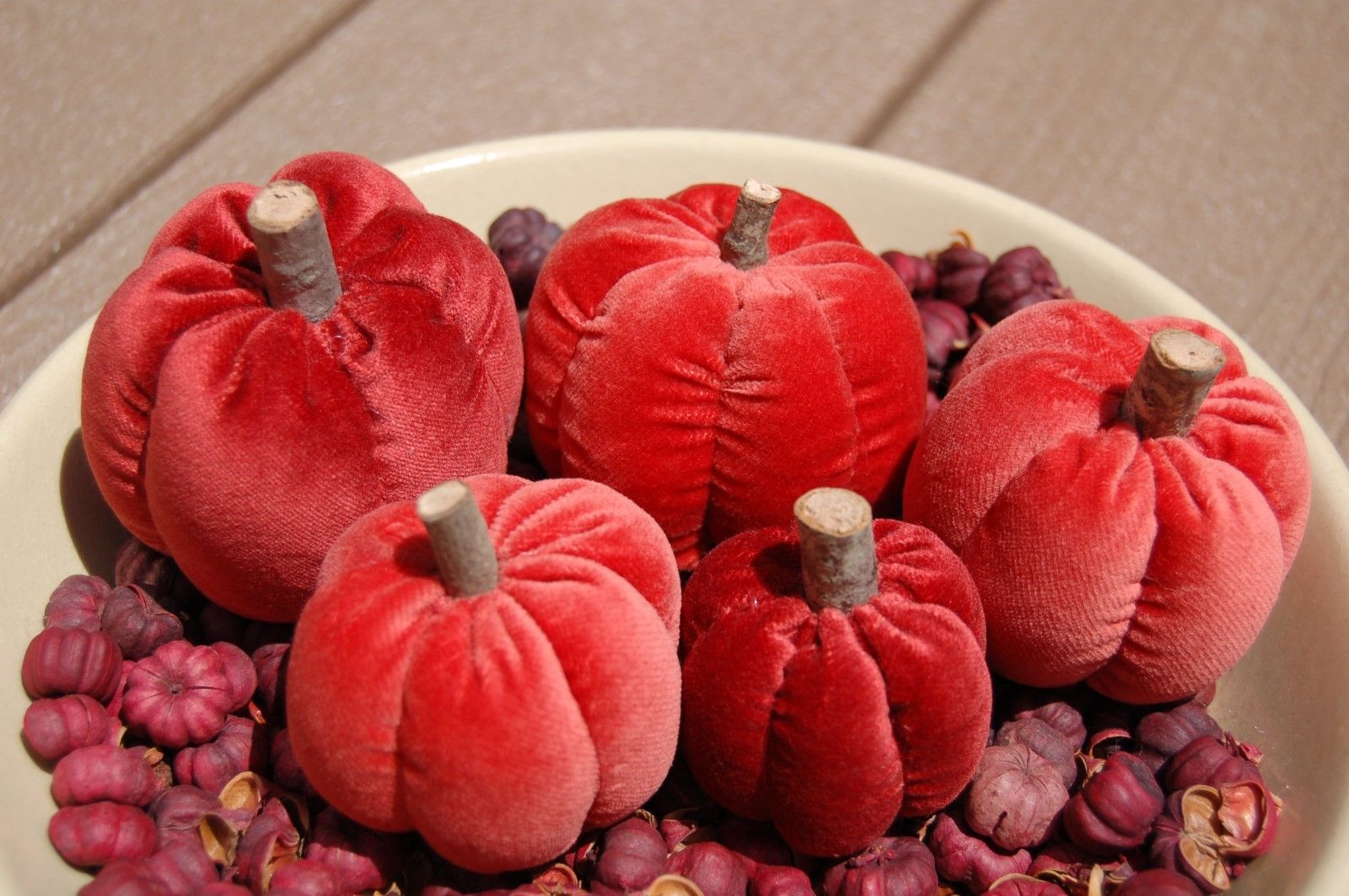 Title (ebay affiliate link): Primitive Fall Halloween Orange Velvet Pumpkin Ornies