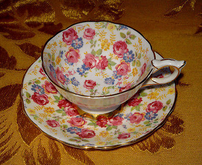ROYAL STAFFORD *JUNE ROSES* FLORAL CHINTZ TEA CUP & SAUCER GOLD TRIM