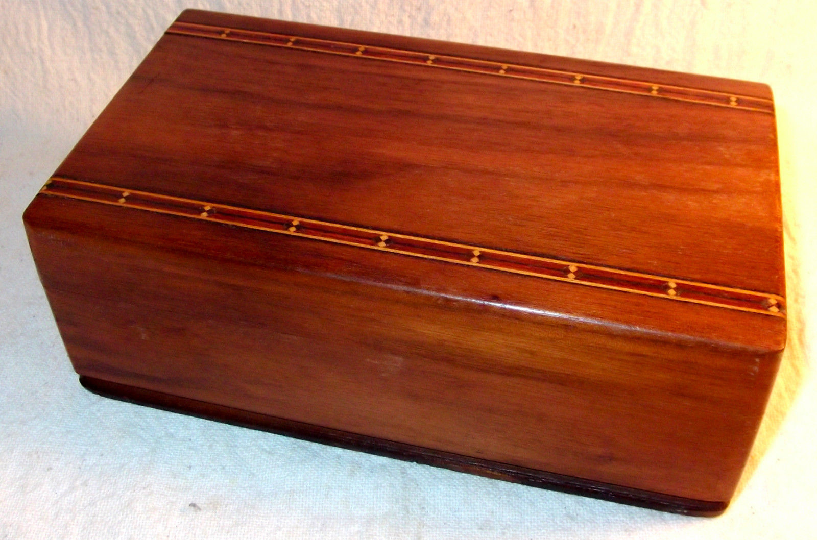 Small Wooden Box with Lid and Inlaid Wood Decoration