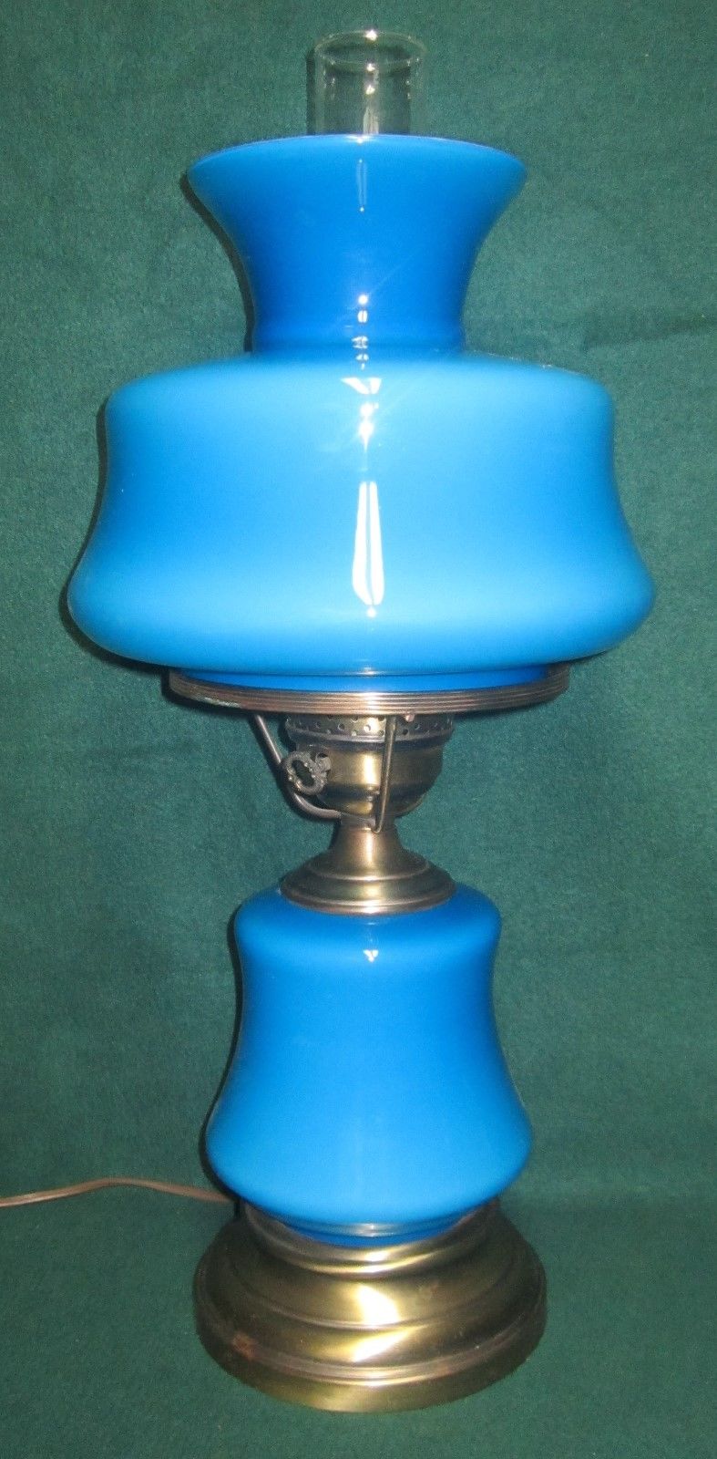 Vintage Blue Cased Gone with the Wind Glass Table Lamp Light