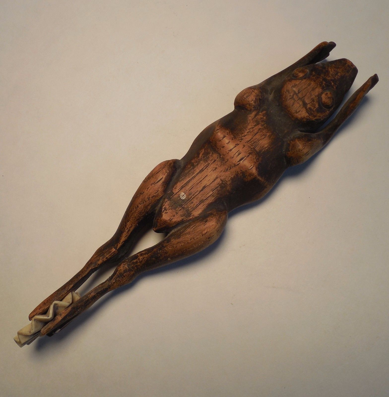 Antique Carved Wooden Figural FROG (?) Pastry Pie CRIMPER