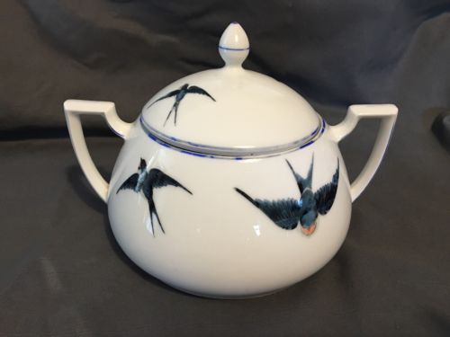 Antique Vintage China Bavaria Sugar Bowl Bird Swallows