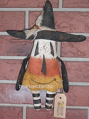 Primitive Halloween Candy Corn Witch Doll Ornie Tuck Folk Art Fall Ornament