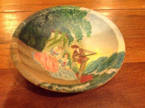 Vintage Munising Wooden Bowl Handpainted Courting Scene