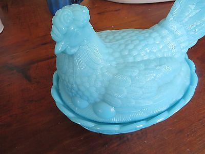 Vintage Blue Milk Glass Hen on Nest Basket~Heisey?