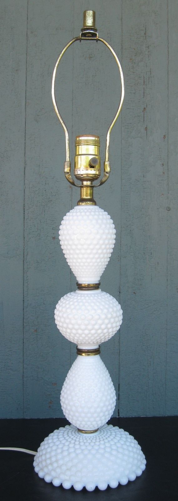 Tall Vintage Hobnail Milk Glass Table Lamp Nice!