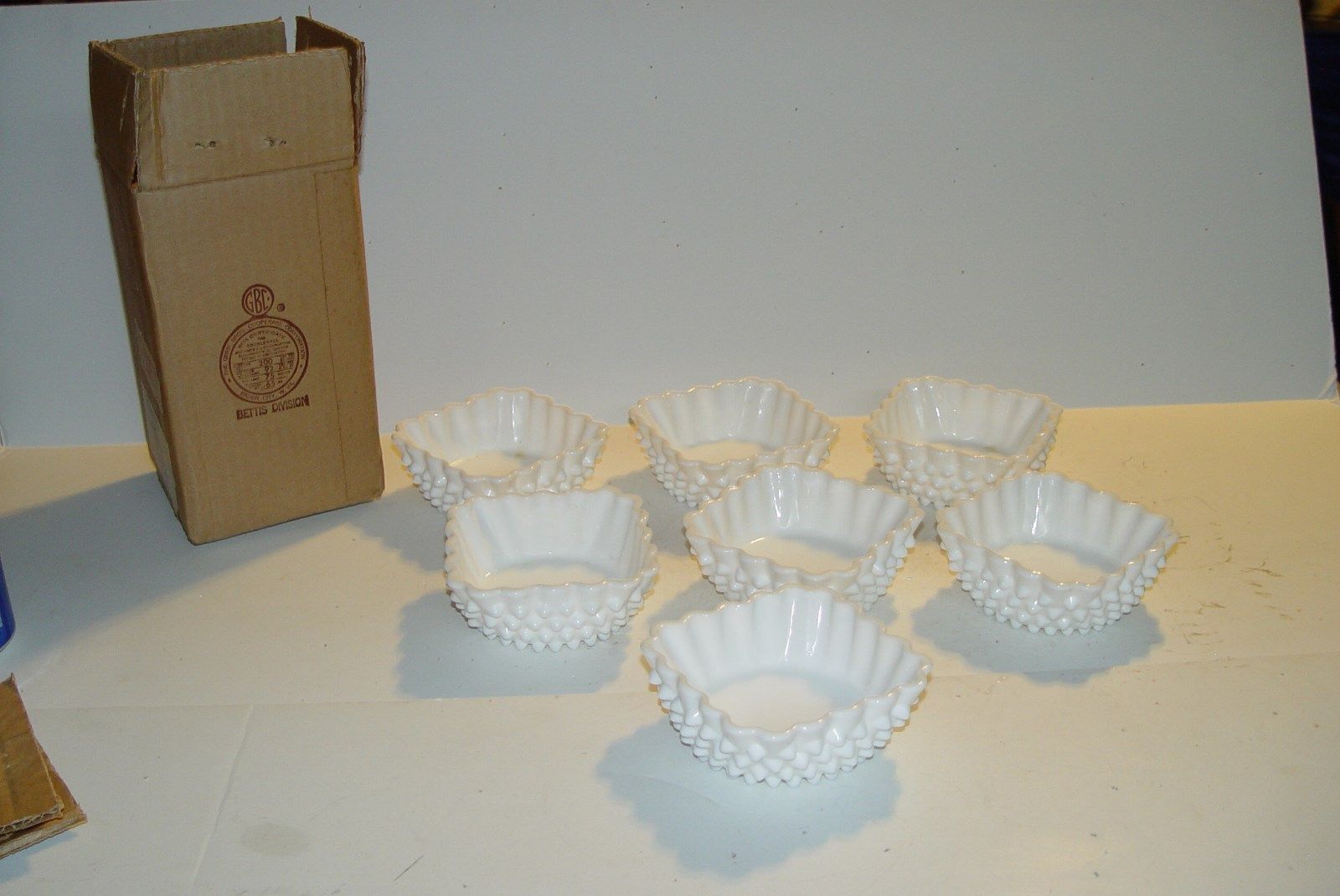 Estate Vintage Set Of 7 Fenton ? Hobnail Milk Glass Berry Bowls New Old Stock