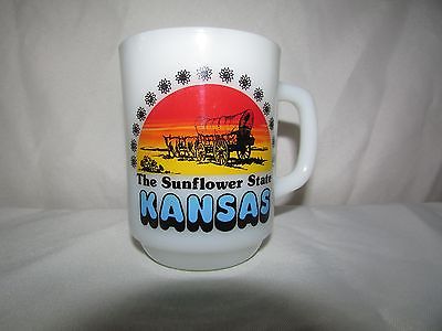 Fire King Anchor Hocking Milk Glass Kansa Coffee Mug/Cup The Sunflower State