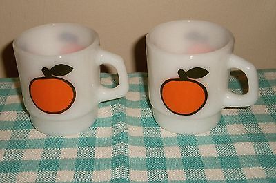 2 MID-CENTURY FIRE KING MILK GLASS ORANGE MOTIF COFFEE MUGS ANCHOR HOCKING USA