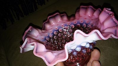 Beautiful Cranberry w/ Milk Glass, Small, Vintage, Hobnail FENTON ART Glass Dish