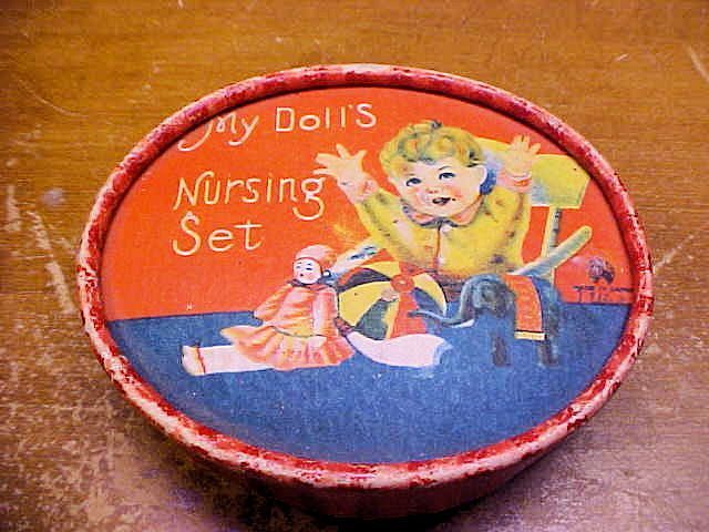 Title (ebay affiliate link): Vintage "My Doll Nursing Set" Celluloid Milk Glass Bottle Orig Box Japan 1930s