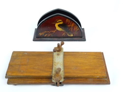 Old Australian Pokerwork Kookaburra letter keep & Flower Press Australiana
