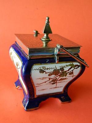1890s Aesthetic Porcelain Mini Biscuit Barrel Taylor Tunnicliffe & Co Silver Lid