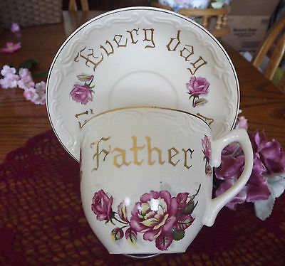 Beautiful Antique Ucagco Ceramic Oversized Fathers' Day Cup and Saucer~!! Lovely
