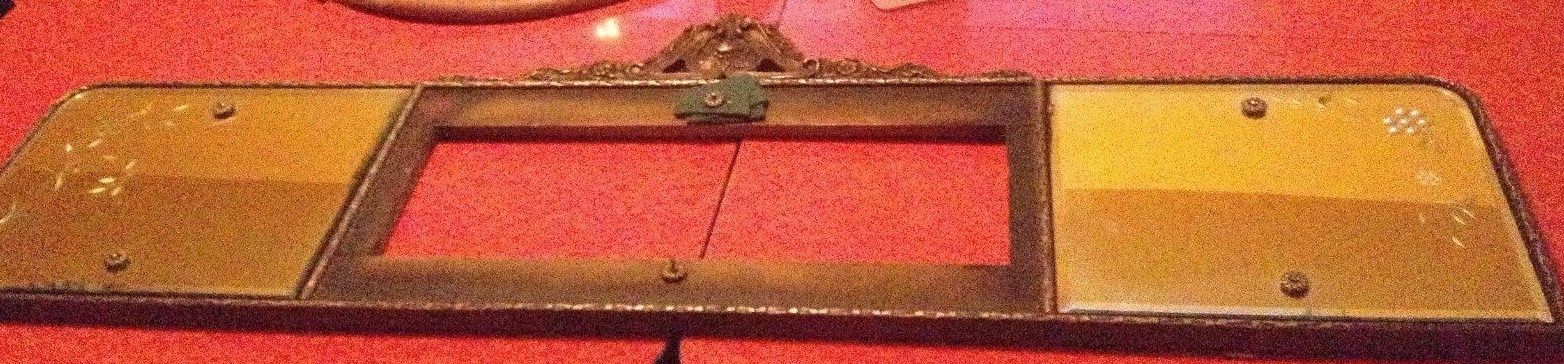 Antique Victorian Carved Wood Etched-Glass 3-Panel Wall Mirror 46"