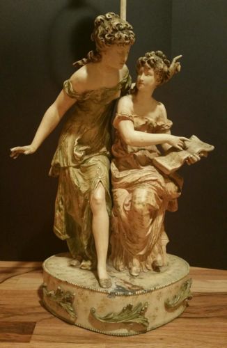 Title (ebay affiliate link): Antique Neo Classical Figural Women Painted Metal Sculpture Lamp Ornate Base