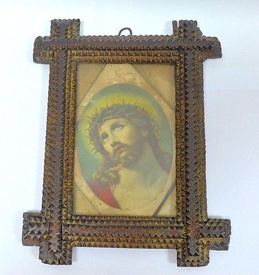 ANTIQUE TRAMP ART PICTURE FRAME - late 19th century
