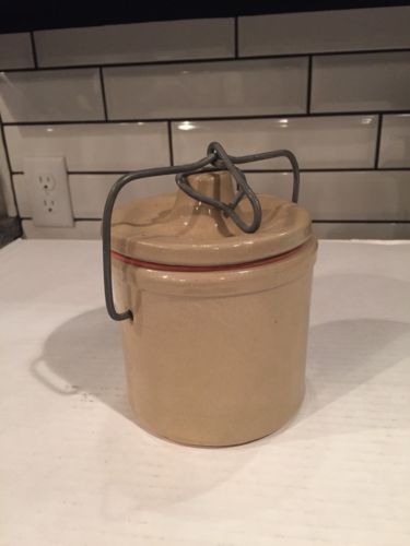 Vintage Bar-Scheeze / Cheese Clamp Lid Crock with Lid, 5.5" Tall