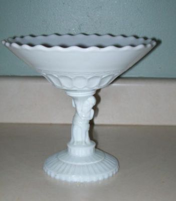 ATTERBURY ATLAS HUGE MILK GLASS COMPOTE CIRCA 1870--80