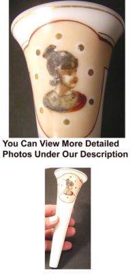 ANTIQUE CAR AUTOMOBILE HAND PAINTED MILK GLASS VASE