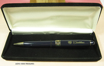 Title (ebay affiliate link): CADILLAC BALLPOINT PEN DARK BLUE WITH GOLD TRIM IN PRESENTATION BLACK VELVET BOX