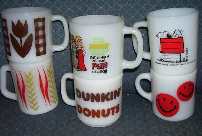 VINTAGE FIRE KING, GLASBAKE, FEDERAL MILK GLASS MUGS