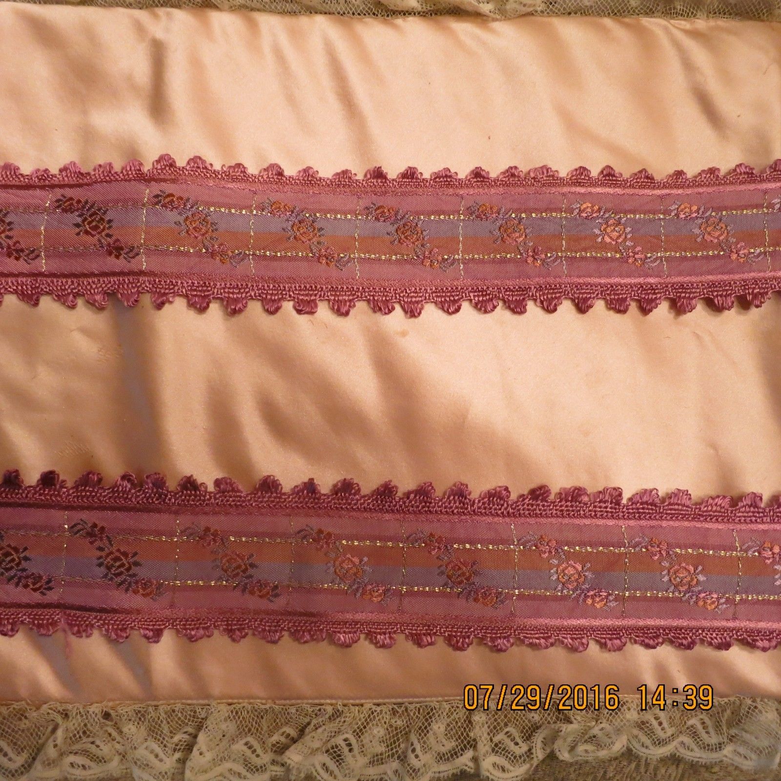 Title (ebay affiliate link): RIBBON TINSEL GOLD TONE ROUNDED FRINGE PLUM DOLL HAT 33" T5T