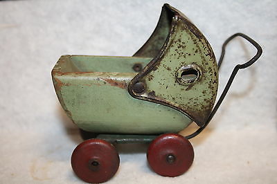 Title (ebay affiliate link): Vintage Green Wood Metal Toy Baby Doll Stroller Carriage Buggy