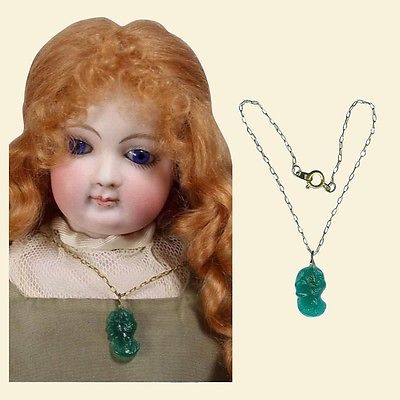 Title (ebay affiliate link): Lovely Antique Green Glass Cameo Doll Necklace for French Fashion!