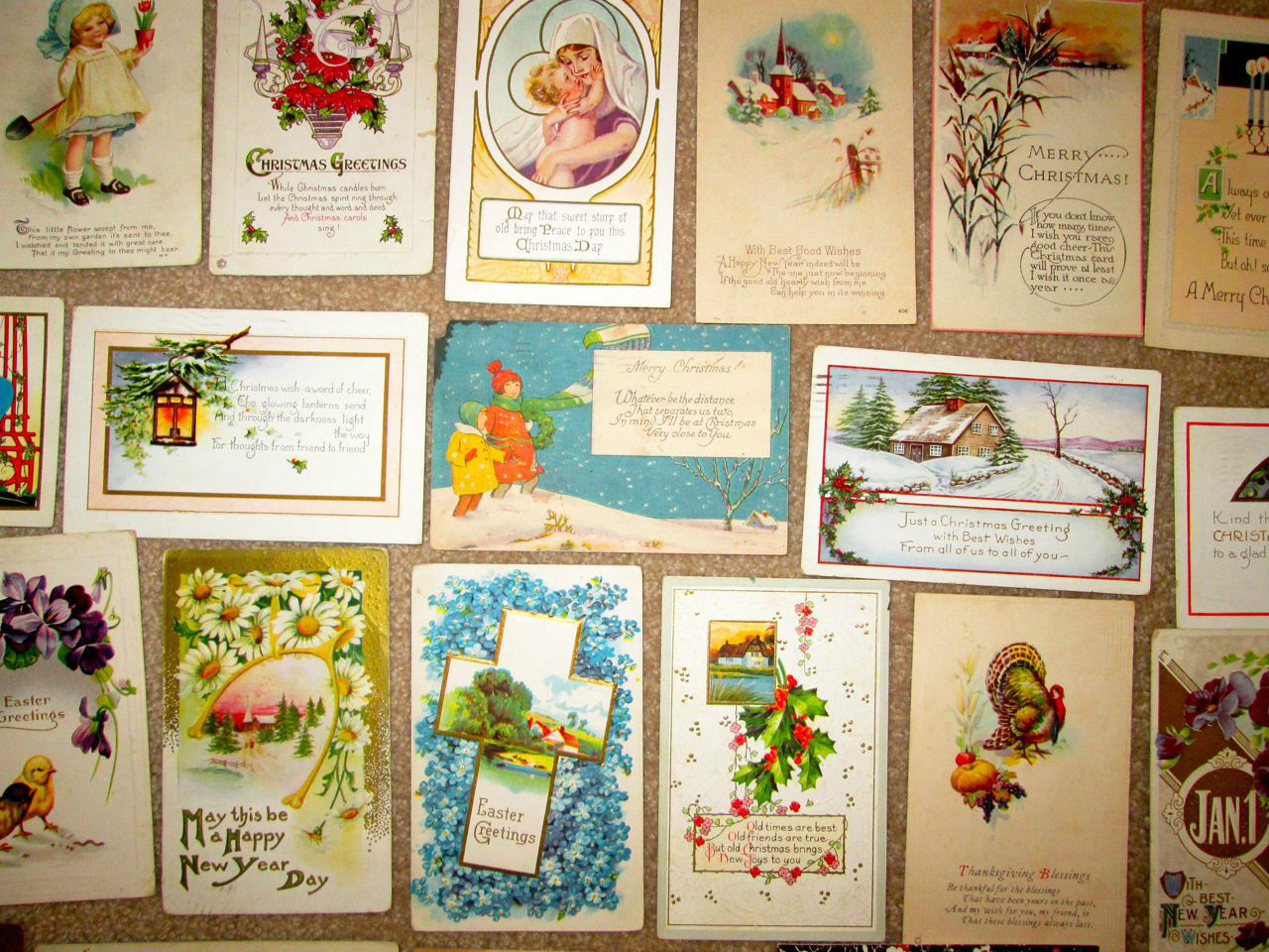 Title (ebay affiliate link): 34 VINTAGE/ANTIQUE HOLIDAY POSTCARDS-CHRIST,EASTER,JULY4,NEW YEAR,THANKSGIVING++